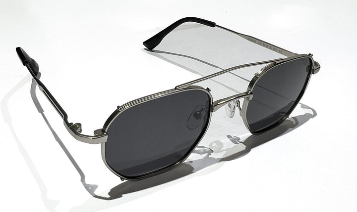 SILVER FRAME WITH BLACK LENSES UNISEX SUNGLASSES - lu